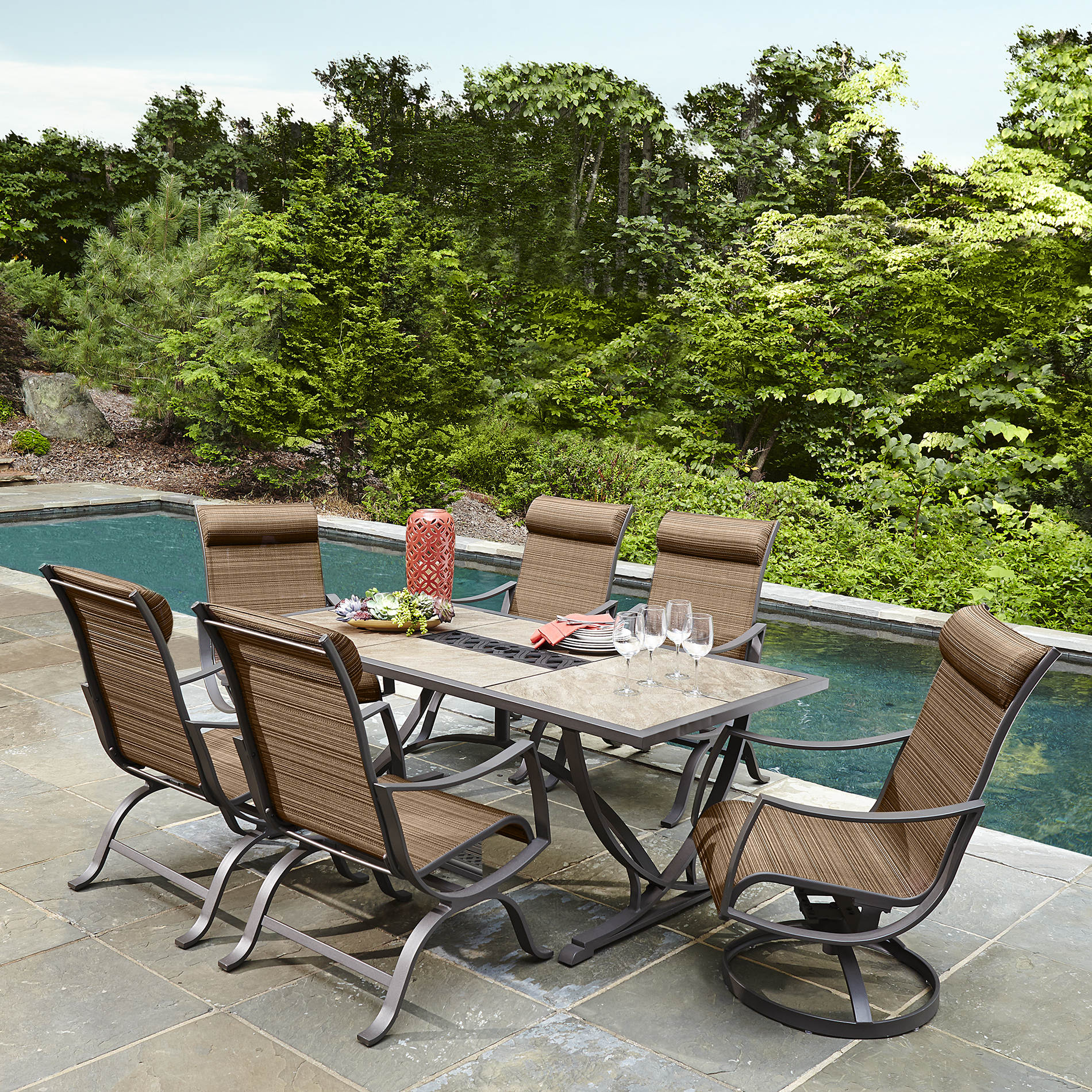 Oakland Living Aluminum 7 Pc. Patio Dining Set w/ 70x38 ... from c.shld.net If you live in an apartment or townhome with a patio, we also have options for smaller spaces, including balcony furniture like chairs, small coffee tables, bistro sets and more. Outdoor furniture for both big and small spaces. Bistro sets are ideal for cramped porches and patios. Compare and contrast and fit out with the different couches and chairs products and select the best way to accentuate the garden together with chairs and couch. To enhance the look, place the table under a pergola and add patio shades to increase comfort while you enjoy dinner al fresco. Winado 4 pc rattan patio furniture set wicker conversation set garden lawn outdoor sofa set cushioned seat tempered glass table top. This compact patio table and chair set from keter is. Shop by sale at searsm for patio furniture including brands like tk classicshome stylesamerica luxurycc outdoor livingmodway, shop for patio furniture such as outdoor dining sets sold by rons home and hardware spending time on your or in garden is a great way to relax.